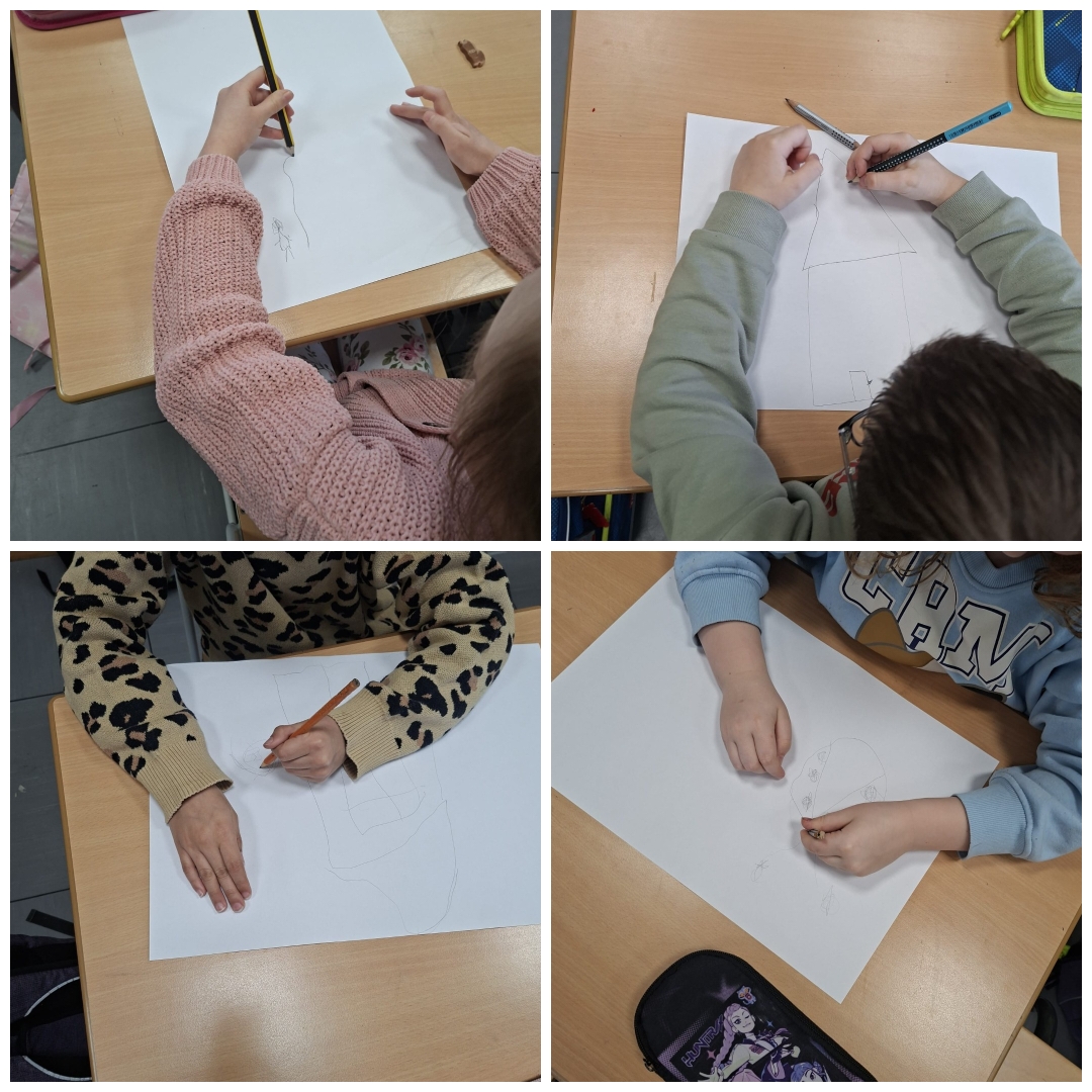 Im Kunstunterricht haben wir mit beiden Händen gleichzeitig gemalt. Das war manchmal ganz schön schwierig, aber auch lustig. Außerdem durften wir ein Haus mit unserer Nicht-Schreibhand malen. Die Häuser waren alle ganz schön schief.