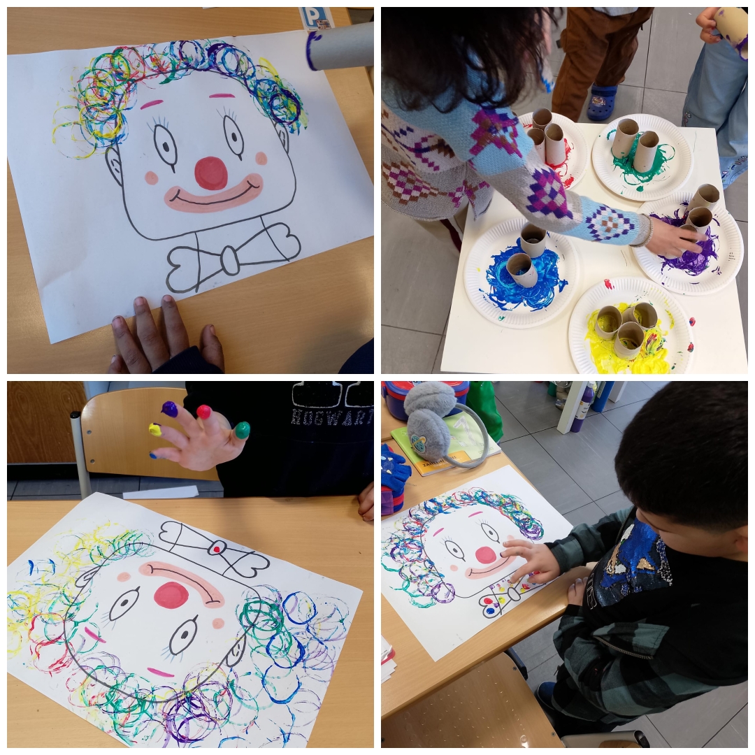 Die Klasse 1b bereitet sich auf Karneval vor und hat bunte Clowns gemalt. Dabei sind viele tolle Kunstwerke entstanden. Die Kinder waren mit großer Freude dabei.