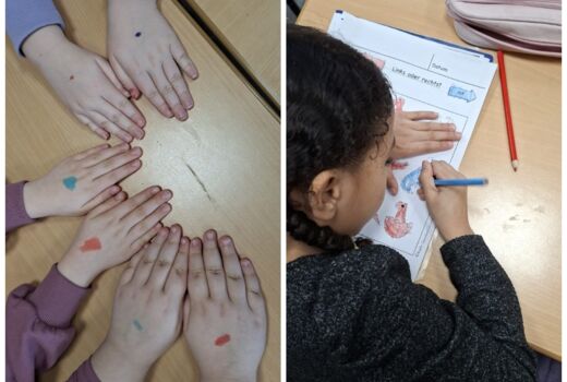 In der Klasse 1a geht es derzeit ganz praktisch zu: Die Kinder beschäftigen sich mit links und rechts – spielerisch, bewegungsreich und mit vielen kleinen Übungen aus dem Alltag.