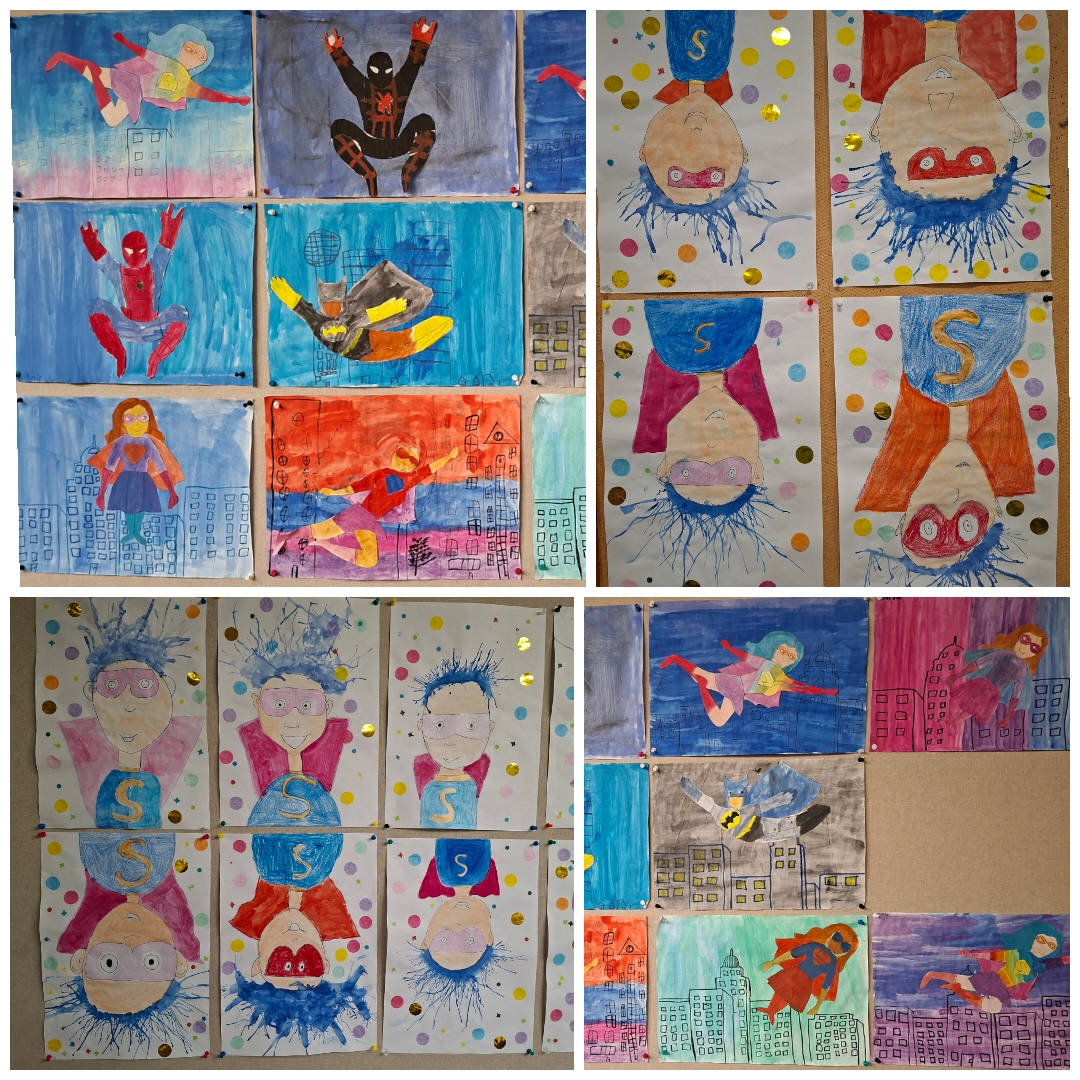 Auch die vierten Klassen tolle Superhelden-Kunstwerke gestaltet: