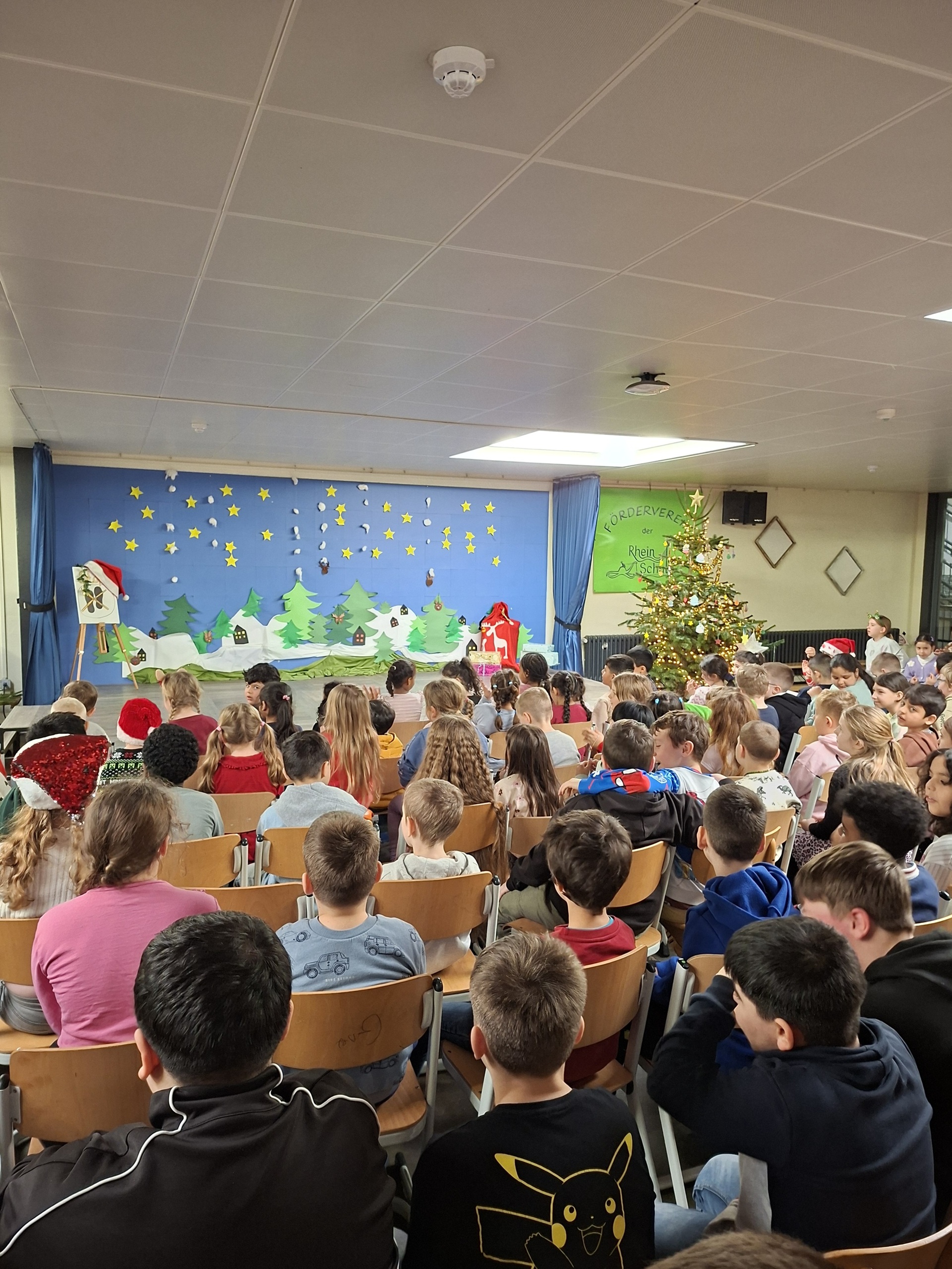 Heute haben wir gemeinsam in der Pausenhalle eine stimmungsvolle Weihnachtsfeier erlebt. Alle Klassen haben etwas beigetragen – mit Liedern, Gedichten, kleinen Aufführungen und vielen schönen Momenten. In den Klassen wurde gemütlich gefrühstückt oder Plätzchen gegessen.